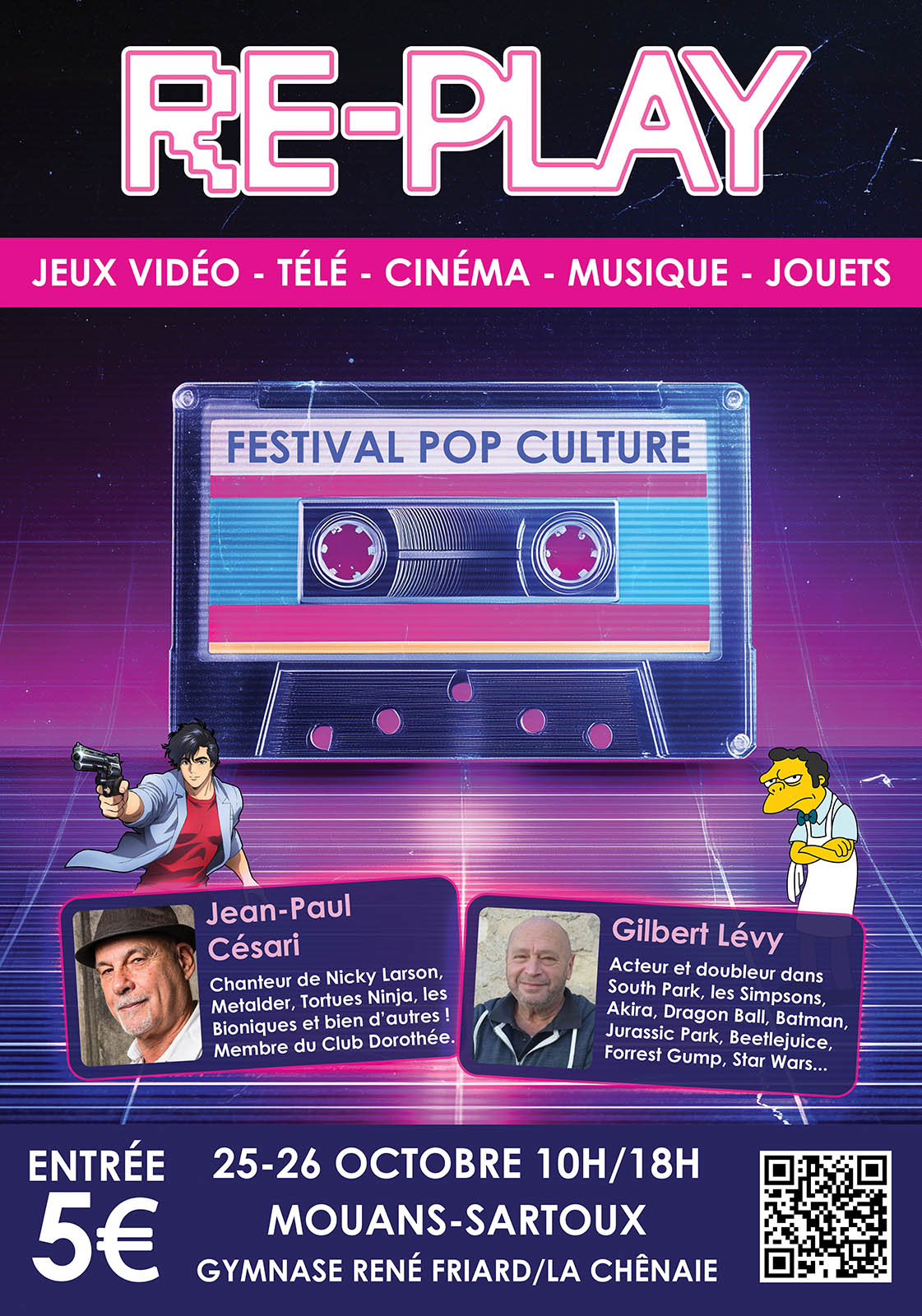 Cette année nous accueillons Jean-Paul Césari qui est le chanteur de Niki Larson Les Tortues Ninja, Les bioniques, … Il a également fait partie de la team du Club Dorothée. Il sera accompagné de Gilbert Lévy qui a doublé tellement de films et dessins animés que son CV est incroyable. Imaginez : South Park, les Goonies, les Simpsons, Akira, Dragon Ball, Jurassic Park, Star Wars et tellement d’autres. Il a même été acteur dans la Vérité si je mens ! On va se régaler.